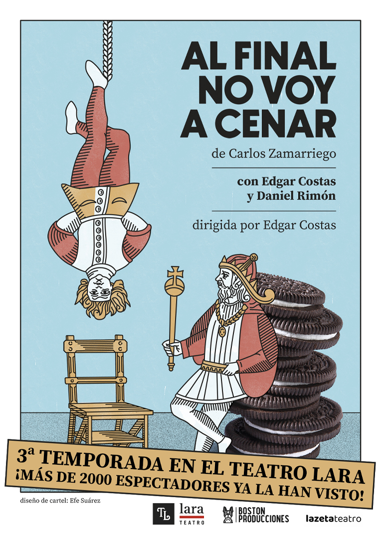 ¡Vuelve el secuestro más absurdo del teatro! Un hombre, llámale X, se encuentra secuestrado por otro, llámale Y. Su única opción de salir de allí es que alguien llame por teléfono y diga “Al final no voy a cenar”. Mientras tanto, intenta averiguar por qué ha acabado en esa situación. ¡El final de esta historia no te dejará indiferente!