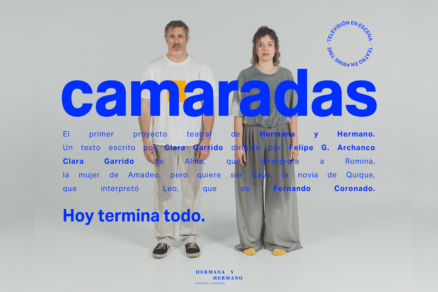 Camaradas ofrece al público lo que no se ve, el backstage; la historia transcurre en un único espacio: un camerino prefabricado. Allí, Leo y Alma comparten los momentos previos y posteriores al rodaje de las