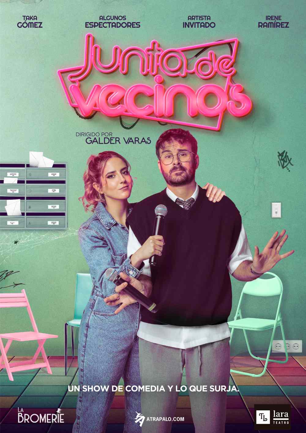 Un espectáculo de comedia dirigido por Galder Varas que mezcla la improvisación de Taka Gómez e Irene Ramírez con el sinsentido y la locura de una Junta de Vecinos cuyos participantes son los propios espectadores del público.
